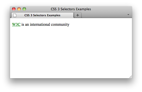 <body> <p><a href="http://www.w3.org/">W3C</a> is an international community</p> </body>